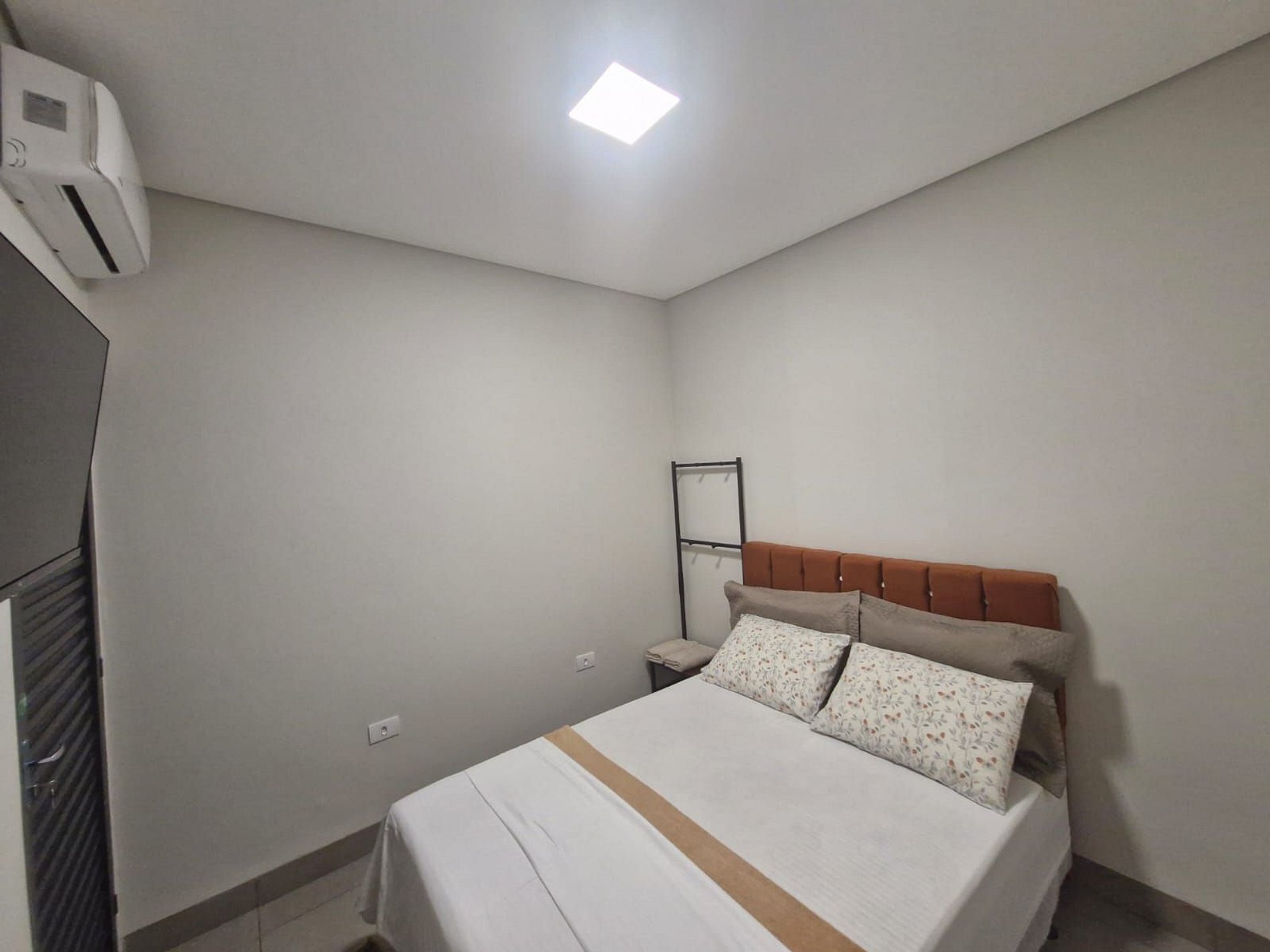 Espaço conta com wifi gratuito chegando ate 800 mega de velocidade, ar-condicionado quente-frio silencioso, fogão elétrico de 2 bocas, utensílios básicos para sua estadia como, pratos, talheres, copos, xícaras, panelas, garrafa térmica, coador de cafe, microondas, frigobar, TV Smart, interfone, portão eletrônico, as vagas de garagem são rotativas com capacidade de 5 vagas, ducha de 30 x 30 cm com água quente e fria proporcionando um banho relaxante. Fornecemos roupa de cama sendo lençol, travesseiros, fronhas e mantas conforme o numero de hospedes e toalha de banho.