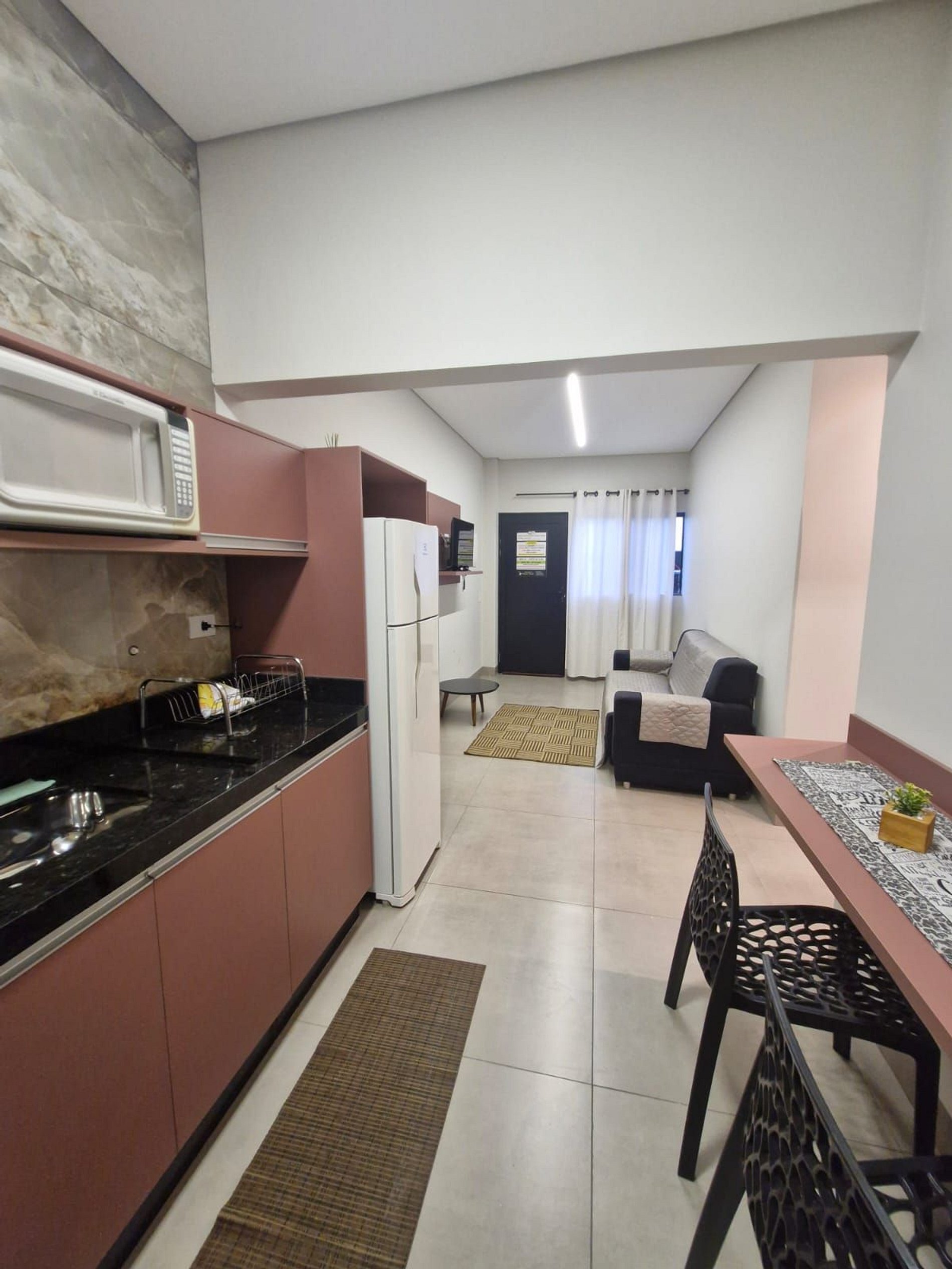Espaço conta com wifi gratuito chegando ate 800 mega de velocidade, ar-condicionado quente-frio silencioso, fogão elétrico de 2 bocas, utensílios básicos para sua estadia como, pratos, talheres, copos, xícaras, panelas, garrafa térmica, coador de cafe, microondas, frigobar, TV Smart, interfone, portão eletrônico, as vagas de garagem são rotativas com capacidade de 5 vagas, ducha com água quente e fria proporcionando um banho relaxante. Fornecemos roupa de cama sendo lençol, travesseiros, fronhas e mantas conforme o numero de hospedes e toalha de banho.